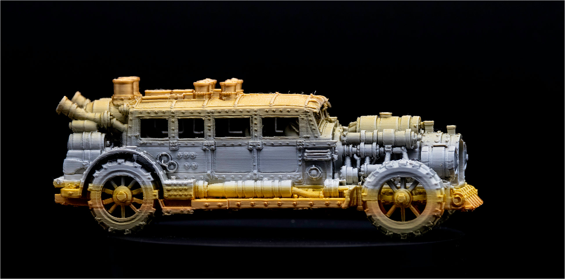 The Mean Machine is a bold steampunk vehicle imagined from an alternate industrial age — where steam power ruled and engineering knew no limits. Packed with pipes, rivets, boilers, and mechanical detail, this striking model captures the raw spirit of Victorian innovation fused with fantasy design.