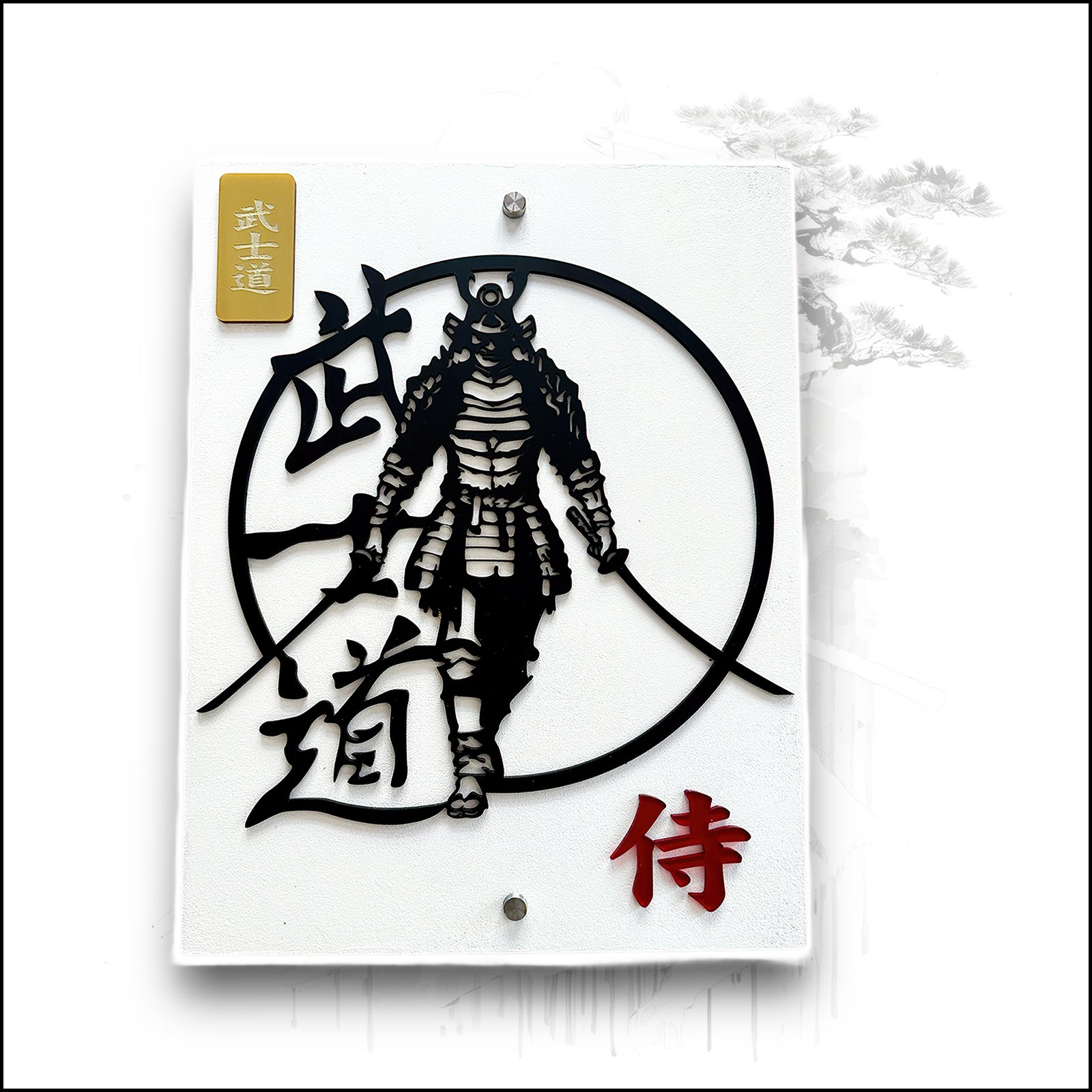This striking 410mm x 310mm wall plaque commands attention with its detailed design. Featuring a Samurai warrior laser-cut from matte black acrylic, it’s mounted on 5mm MDF coated with exterior primers and finished with a protective lacquer. Kanji symbols add authentic flair, including a gold-effect acrylic engraving representing The Way of the Warrior and a red laser-cut kanji for Samurai Warrior in the bottom left corner. Complete with stainless steel stand-off mounting brackets, this piece makes a captivating addition to your home or koi pond area.